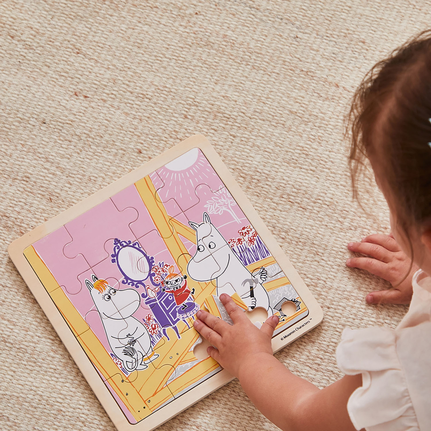 This charming wooden puzzle from Moomin features a delightful jumping Moomin motif.